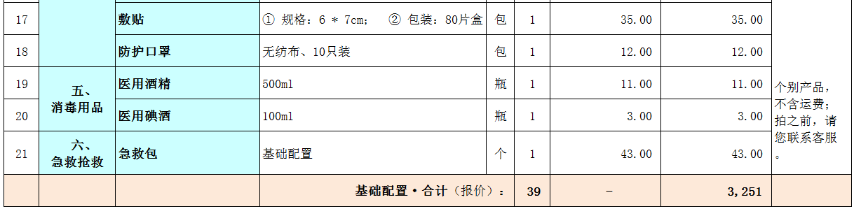 3、倾情奉献空——空咱们老百姓的春天来了! 现在,扬帆医疗将多年积累下来的打包能力和丰富经验,用于咱普通老百姓的家庭基础医疗用品配置,帮助老百姓省时、省力、省心、省大钱! 扬帆医疗,助力咱百姓家庭健康事业 扬 帆 起 航、 扬 帆 远 航! 咨询热线:400-679-8090 四、扬帆医疗 ★『百姓家庭-基础医疗专用空•空打包配置方案』 之空打包“基础版配置方案” 1、简要说明 1)配置说明 以下配置,是百姓家庭医疗的基础版配置方案。请您根据自己的个性化需求,同扬帆医疗咨询顾问沟通后,来确定一个更适合自己的打包配置方案。 2)价格说明 以下价格,是百姓家庭医疗上述基础版配置的经济型价格,仅供参考。 扬帆医疗咨询顾问将根据您的个性化需求,在同您充分沟通协商、并确定了打包配置方案之后,再给出扬帆医疗的打包优惠价格。 2、配置方案—— 百姓家庭医疗·基础版配置方案·经济型价格(报价) 1)基础配置